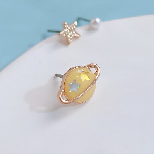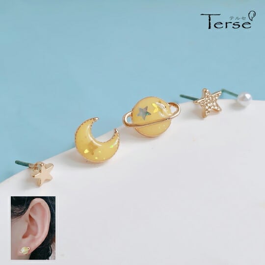 Terse お得なコスモピアスセット (5点入) イエロー系 その日の気分で 気軽に楽しめる 三日月 月 ムーン 土星 サターン 星 スター 流星 夜空 パール 真珠 ゴールド 金 ミニ 小さい 可愛い 普段使い お出かけ イベント パーティー デート プレゼント 宇宙 sa0091aye