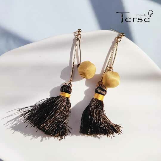 Terseピアス 1ペア レディース タッセル 黄色 イエロー ブラック 黒色 ゴールド 金 秋 オータム 冬 ウィンター お出かけ パーティー デート 普段使い プレゼント se0148ay