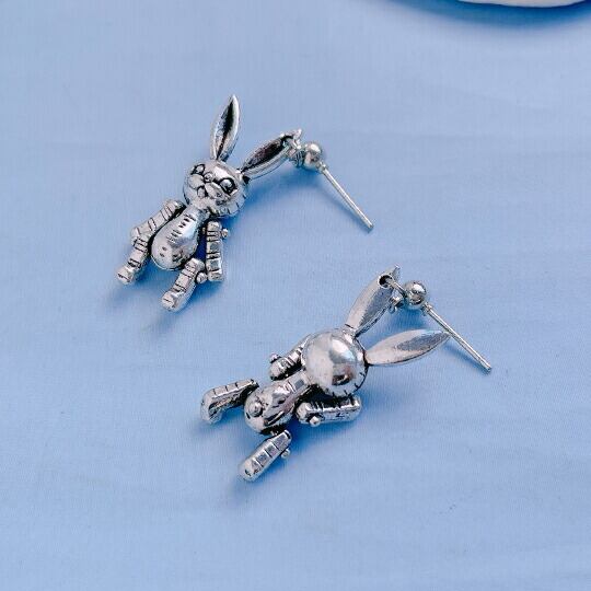 Terse いたずらそうなお目目がカワイイシルバーウサギのぬいぐるみモチーフピアス アンティーク風 古さと新しさが織り交ざった古美加工で魅せる新感覚おしゃれアイテム 干支 兎 お正月 お出かけ アニマル パンク ロック風 ヴィンテージ 加工 ギフト ユニーク sa0197a