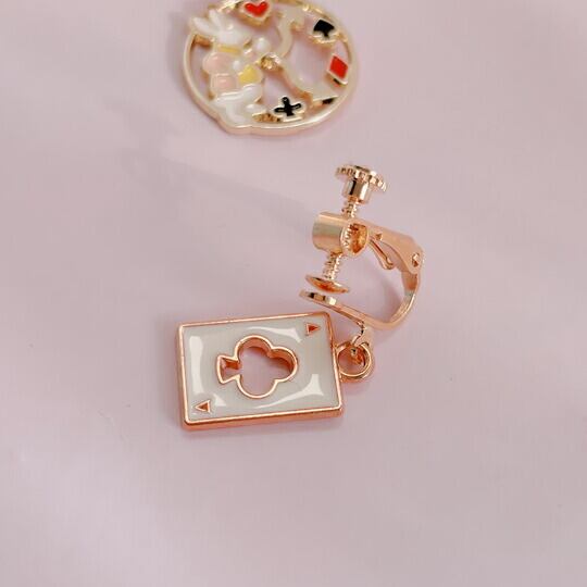 Terse 1ペア レディース アシンメトリー フックピアス アリス 不思議の国 白うさぎ ウサギ 兎 兔 時計 クロック クローバー エース トランプ かわいい 人気 おしゃれ 誕生日 デート 普段使い プレゼント エナメル sa0078e