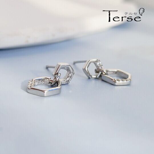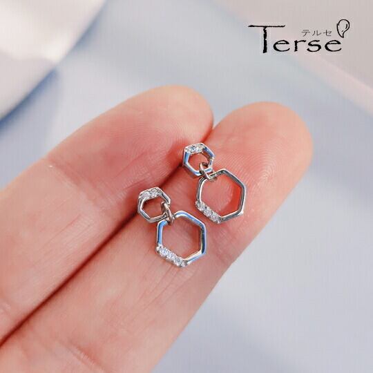 Terse 2連六角形CZダイヤピアス シンプルなコーディネートに合わせて、ミニマムに シンプルなので、セットアップやハンサムスタイルに合わせて、オフィス使いも カジュアル 遊び心と個性のある仕上がりになっています ハニカム ミツバチの巣 ギフト se0305a