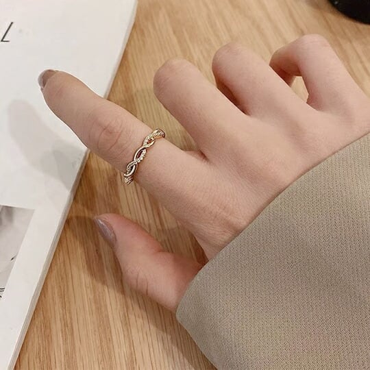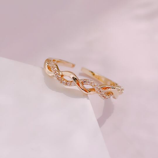 TerseCZダイヤの入ったねじねじ サイズフリー指輪 どんなファッションにも馴染みやすい、華やかなゴールドの流れるようななめらかなカーブ キュービックジルコニアで描く斜めのラインが指を細く長く見せてくれるフォークリング 普段使い プレゼント rs0214ag
