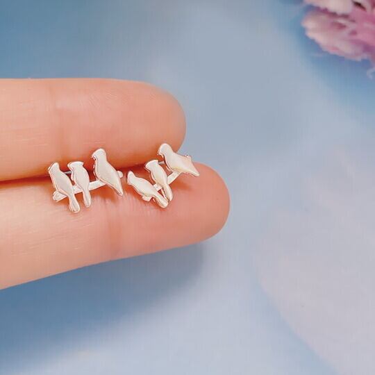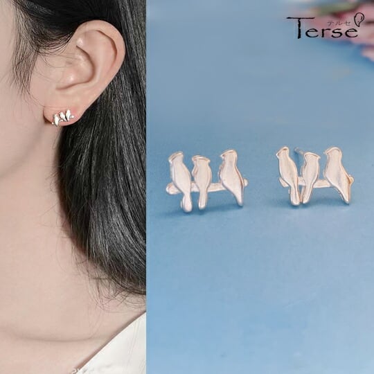 ■三羽の小鳥が顔を見合わせて、耳元を愛らしく彩ります!Terseのシンプルでかわいい銀のピアスで、日常のコーディネートをもっと楽しく演出しましょう!