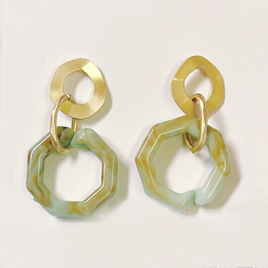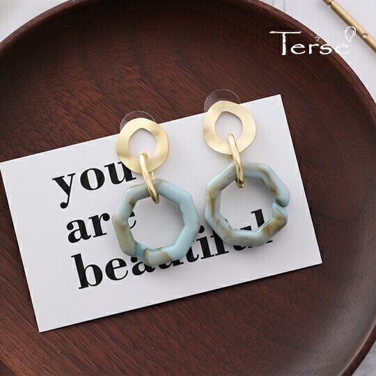 Terse 爽やかブルーグリーン×ゴールド こなれ感たっぷりのダブルリングピアス 1ペア レディース 上品 エレガント お洒 落華やか 女性らしさ アクセント アクリル樹脂 普段使い お出かけ パーティー 食事会 女子会 デート プレゼント ギフト se0258abl