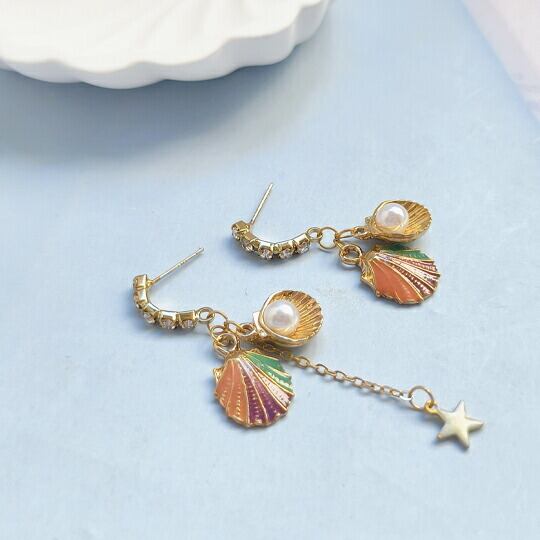 可愛いカラフルシェルが夏を感じさせる!Terseの「カラフルシェル&パールで夏気分ピアス」は、貝殻とパールの組み合わせが魅力的なアクセサリーです。このピアスは、海や砂浜のシーンはもちろん、普段使いからお出かけ、デート、お呼ばれ、パーティーなど幅広いシーンで活躍します。カラフルなデザインがあなたの個性を引き立て、どんなコーディネートにも見事にマッチします。