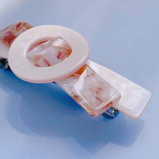 Leafy サークルバックルモチーフ マーブル模様バレッタ 品の良いカラーでマルチに大活躍! 髪にやさしいカバー付 レディース キュート おしゃれ 華やか アクセサリー アレンジ 髪留め 髪飾り お出かけ イベント デート 二次会 パーティー 普段使い プレゼント ha0058