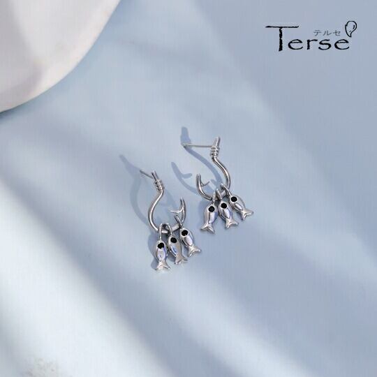 Terse まるで釣られたばかりのような、かわいい3匹の小魚のピアス 個性的なデザインでつけてるのが楽しくなりそう 普段使い プレゼント ギフト お出かけ アニマル フィッシュ 釣り針 川 シルバー リゾート 夏 海 動物 プレゼント ビーチ 面白い S925ポスト sa0183a