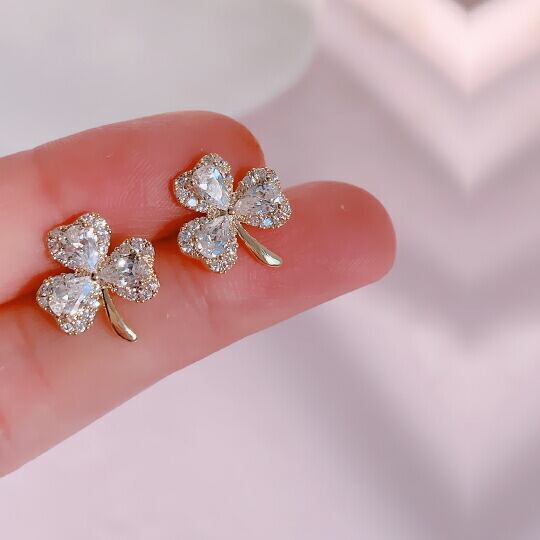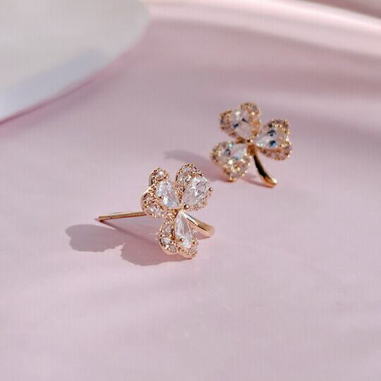 Leafy信仰 希望 愛を表している三枚の葉のクローバーモチーフのCZダイヤピアス きちんと装うオフィスから カジュアルに過ごす週末 友人たちとのディナーまで どんな装いにもプレシャスなアクセントに ひとつ着けるだけで存在感を放ち、洗練された横顔に sr06064y