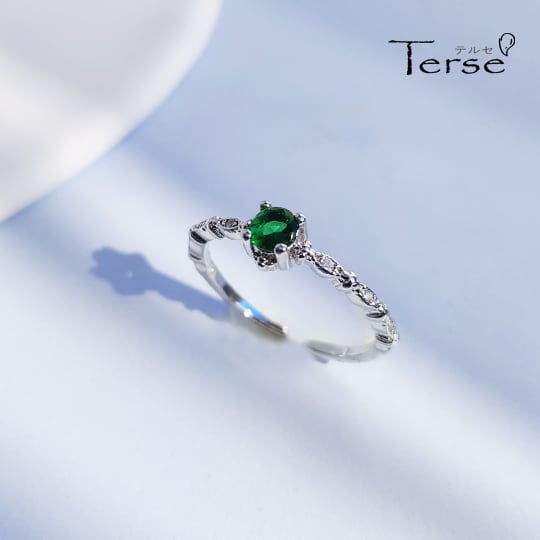 存在感抜群!Terseの見る者を癒してくれる魅力的なエメラルドグリーCZダイヤ指輪で、大人の指先をエレガントに演出!
