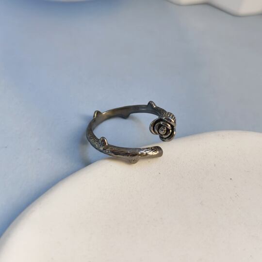 ■魅力的なデザインが際立つ黒いバラの指輪!Terseの「シルバー925黒いバラの指輪」で、あなたのスタイルに優雅さをプラスしましょう!