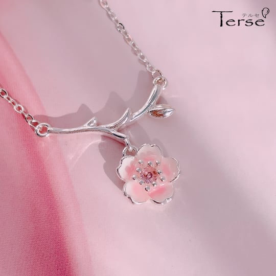 洗練された桜の美しさを演出するネックレス!Terseの「銀の枝と薄ピンクエナメル桜のネックレス」で、あなたのスタイルに華やかさをプラスしましょう!