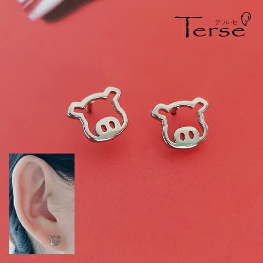 Terse 洗練された透かしピッグモチーフピアス 子豚をモチーフにしたユニークな シルバー925ピアス 自分用としてはもちろん、プレゼントとしても大変喜ばれますよ 干支 動物 アニマル イノシシ 亥年 小さいぶりシンプルネックレス お正月プレゼント バレンタイン 彼女 sa0190a