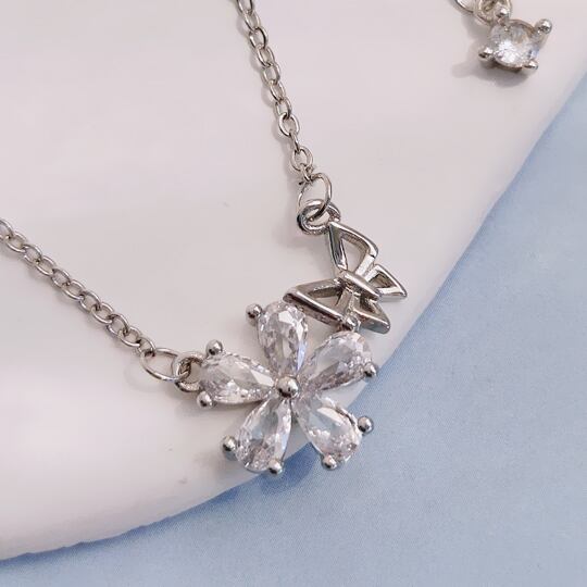 Terse キュービックジルコニアを使用し、カットの質も良くあらゆる角度から光を反射しキラキラと輝きを放ちるフラワーペンダント お花と蝶々のデザインは胸元から全身を華やかなイメージに飾り立てます どんな装いにもシーンを選ばずご使用いただけます sn0369a