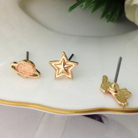 Terse ピンクで柔らかな印象に☆猫と土星とお星様 日替わりで楽しめるお得なミニピアスセット (3点入) エナメル キャット ネコ ねこ 動物 アニマル スター サターン 普段使い お出かけ イベント パーティー デート 注目 バレンタイン プレゼント ギフト 自分用 友達 宇宙 sa0132apk