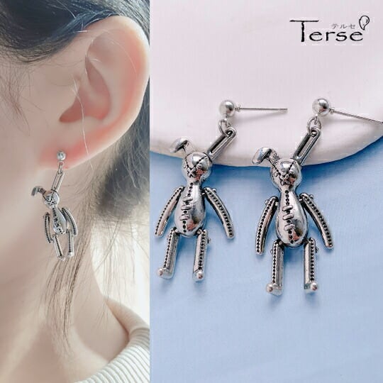 ■心を癒す愛らしいデザイン!Terse手足が動くロボットうさぎモチーフピアス!