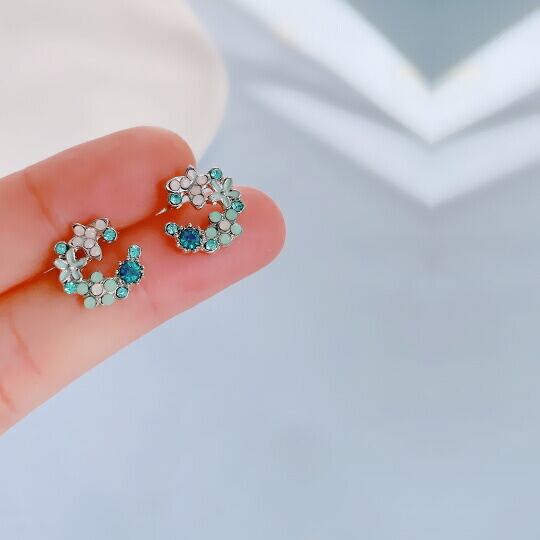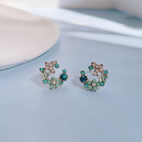 「Terseのカラフルなラインストーンで装飾されたフラワーモチーフピアス」は、春を感じさせる明るいデザインが特長の魅力的なアイテムです☆このピアスを耳元に加えることで、普段のコーディネートに華やかさをプラスし、周囲の視線を惹きつけること間違いなしです!