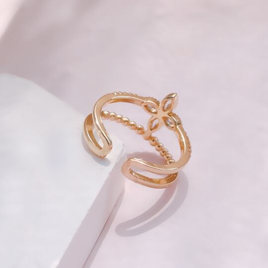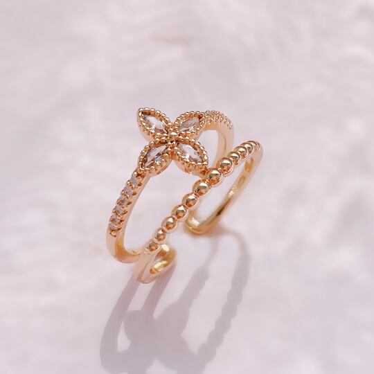 微細な輝きを演出するTerseの「ミル打ちフラワーモチーフCZダイヤ2連指輪」で、指先に自然の美しさを宿してみませんか?この指輪は、愛らしいフラワーモチーフに高級感漂う4粒のキュービックジルコニアを組み合わせ、まるで本物の花のような立体感を生み出しています☆シンプルでありながら、上品な雰囲気を醸し出すデザインが特長です。