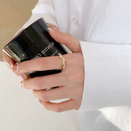 華やかでエレガントな指先に仕上げる!Terseの「流れるようなCZダイヤモンド&小粒パールとの組み合わせがエレガントさ溢れるデザインリング」で特別なスタイルを楽しんでみませんか?
