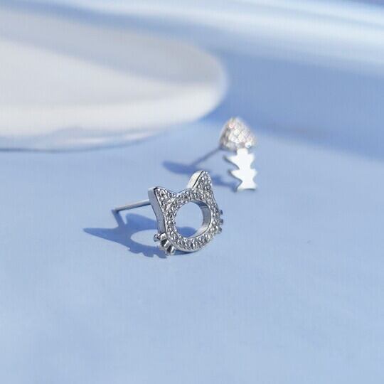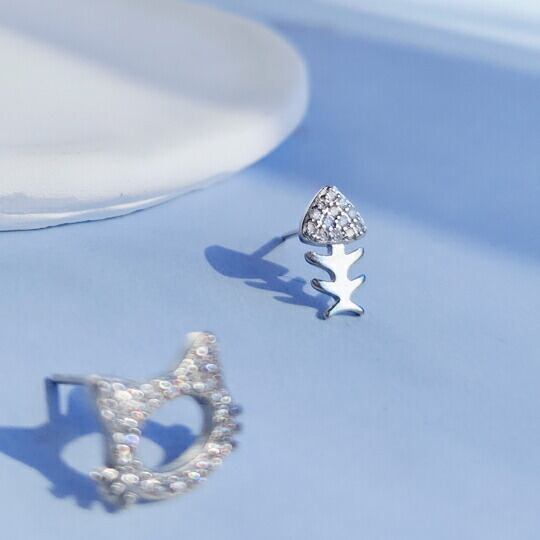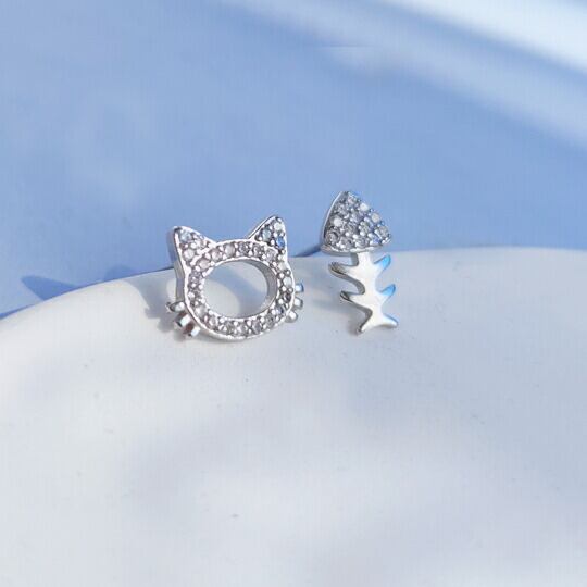 Terse 上品なシルバー☆ネコちゃんと骨になったお魚さんのアシンメトリーピアス 1ペア レディース 左右非対称 ジルコニア キュート ユニーク 面白い キャット アニマル フィッシュ プレゼント お出かけ デート パーティー イベント 食事会 女子会 猫と魚 アシンメトリー 非対称 左右デザイン ジルコニア 上品 キュート ユニーク 面白い プレゼント 2026トレンド ピアス レディース アクセサリー シンプル 華やか 大人可愛い sa0141as