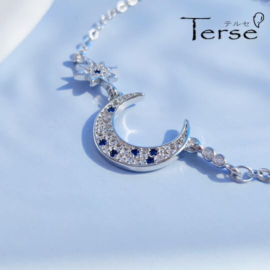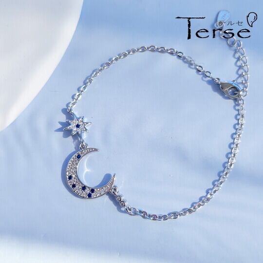 Terse 神秘的で広大な宇宙をイメージソースにしムーン&スターモチーフブレスレット 軌道の先に星と三日月を模したCZダイヤをセッティングしたブレスレット 身につけた女性を、上品にそしてどこかミステリアスに魅せてくれます キュービックジルコニア 宇宙 ムーン スター 星 三日月 ジルコニア CZ ミステリアス 上品 2026トレンド ブレスレット レディース アクセサリー シンプル 華やか 大人可愛い bl0095a