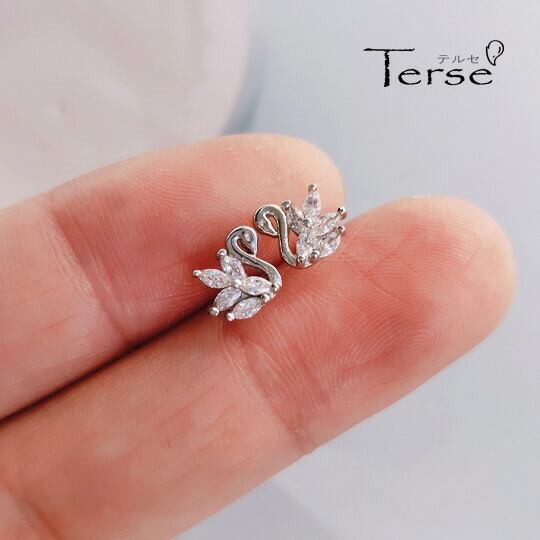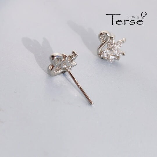「Terse どんな装いにもエレガントな輝きを添えるCZダイヤスワンピアス」は、美しい白鳥をモチーフにした特別なアクセサリーです☆ 精巧なキュービックジルコニアが並ぶデザインで、耳元を華やかに彩り、どんなシーンでも明るく輝きを放ちます。