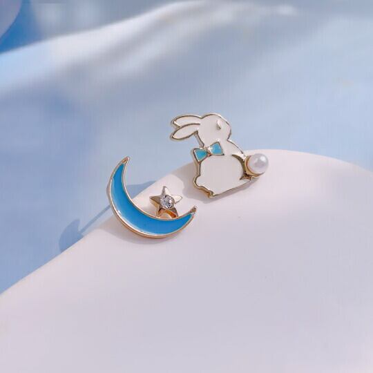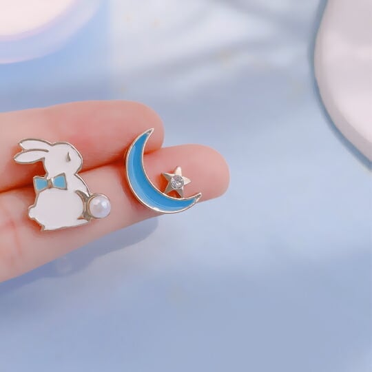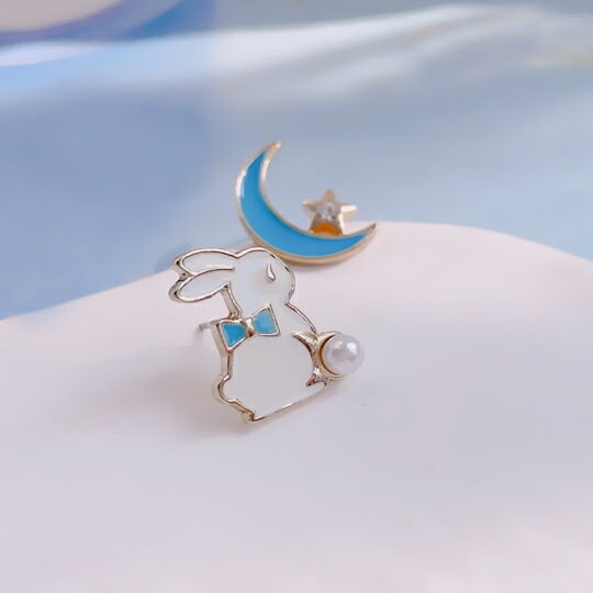可愛さ満点!「Terse キュートな白ウサギと三日月のアシンメトリーピアス」