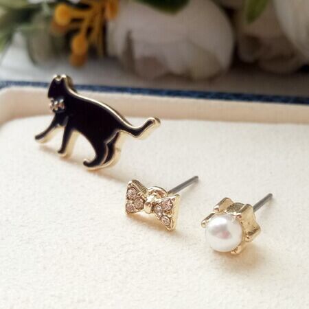 Terse 狙ってる物は何?☆忍び足ネコのキュートなピアス お得なセット売り (3点入) ブラック レディース パール リボン キャット ねこ ネコ アニマル 動物 ねこ好きさん キュート 人気 お出かけ イベント パーティー デート ハロウィン 冠婚葬祭 入園式 忍び足 忍者 動き 3点 セット 多様 コーディネート 2026 トレンド ギフト 交換用 軽量 耳負担 軽減 収納 便利 フォーマル 対応 お守り sa0097abk