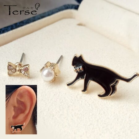キュートなネコの魅力を耳元に!Terse「狙ってる物は何?」☆忍び足ネコのピアスお得なセット売り(3点入)