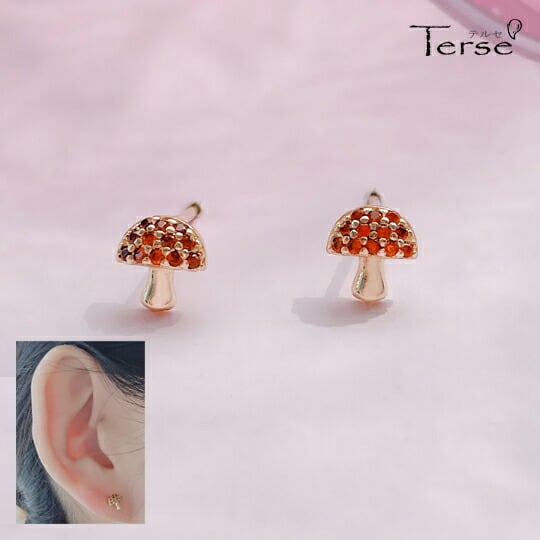 上品で遊び心溢れる秋の装いを彩る!Terseの「照りの良いルビー色CZダイヤを贅沢に模様したキノコモチーフピアス」で、あなたの耳元に華やかな魅力をプラスしませんか?