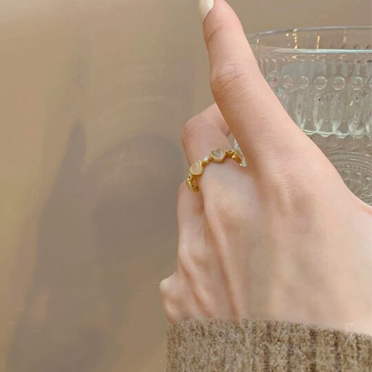 この「Terse ミル打ち膨らんだハートモチーフムーンストーンハートが繋がるシンプルリング」は、可愛らしいハートのデザインが特徴で、どの角度から見ても美しいハートの輝きをお楽しみいただけます。上品さと女性らしさが融合したこのリングは、特別な瞬間からデイリースタイルまで、幅広く活躍するアイテムです!シンプルながらも存在感を放つこの指輪は、大人女子がさりげなく着けたいクラシックな逸品です。