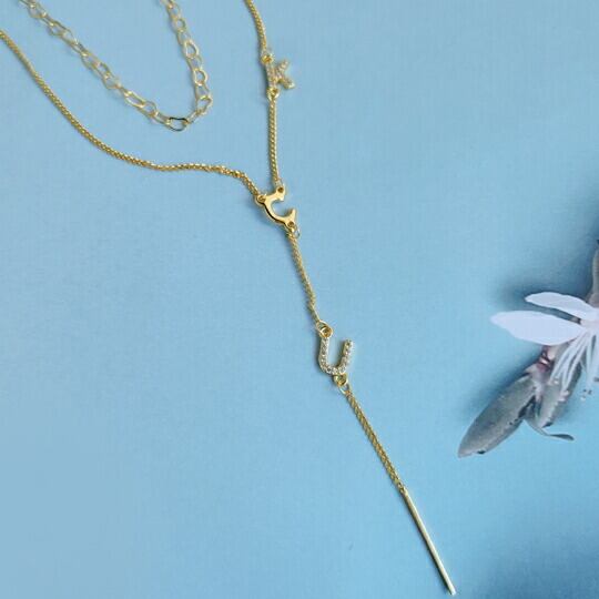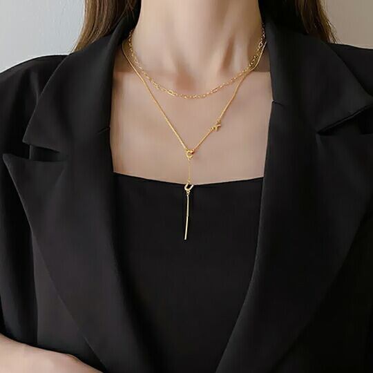 上品で華やかな輝きをあなたの胸元に!Terseの「CZダイヤでアルホースシューのモチーフが胸元に垂れるデザインの2連ロングチェーンネックレス」で、特別なシーンを彩ってみませんか?