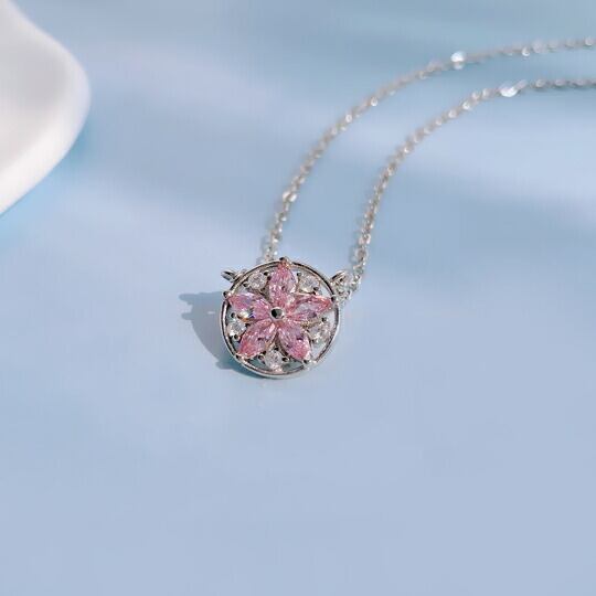 春の華やかさをあなたの胸元に!Terse 桜モチーフCZダイヤペンダント!「Terse ボリューム感のある華やかな仕上がりにデザインした桜モチーフCZダイヤペンダント」は、薄ピンクのキュービックジルコニアが揺れ、胸元でキラキラと煌めきます。桜の花をモチーフにした優雅なデザインは、春らしい気分を演出し、甘すぎない女性らしさを引き立ててくれます☆