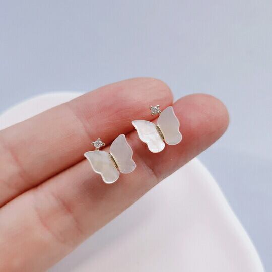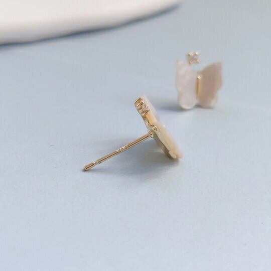 Leafy本物のマザーオブパールを使用したリッチ感のある蝶々モチーフのピアス ラグジュアリー感のある洗練されたデザインなのでこれ一つでグレード感のあるスタイルが出来上がります デイリーのカジュアルスタイルからパーティーや特別なイベントまで使えますsr02025by