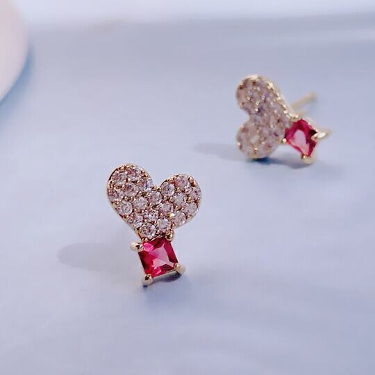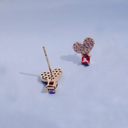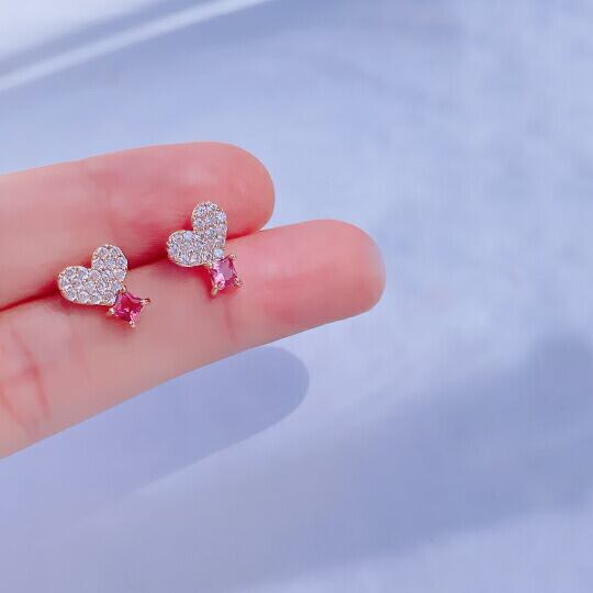 Leafy ピンクジルコニアが光るミニハートピアス 1ペア レディース シルバー 小さめなのでオフィスでも◎ お出かけ イベント デート 結婚式 二次会 お呼ばれ パーティー 普段使い プレゼント 14KGP ゴールドメッキ sr00534ygr