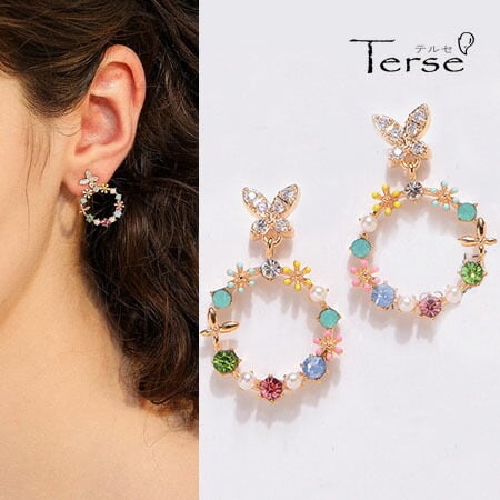 Leafy ピアス 1ペア レディース フラワー 花 蝶 バタフライ カラフル 華やか にぎやか 可愛い キュート お顔のアクセント リング 輪 サークル ビーズ風 デイリー 普段使い お出かけ パーティー イベント 二次会 フォーマル プレゼント 春 sp0127a 7月誕生石