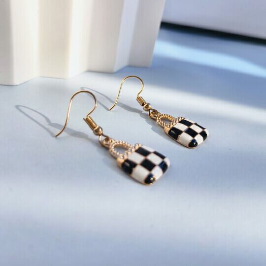 ■おしゃれな「Terse ブラックチェックフックピアス」で、あなたのスタイルをアップデートしてみませんか?このピアスは、可愛らしいチェッカーデザインと豪華なゴールドのフックが組み合わさったお洒落なアイテムです。普段使いや特別なお出かけにもぴったりで、あなたの魅力を輝かせること間違いなしです!