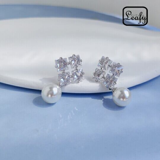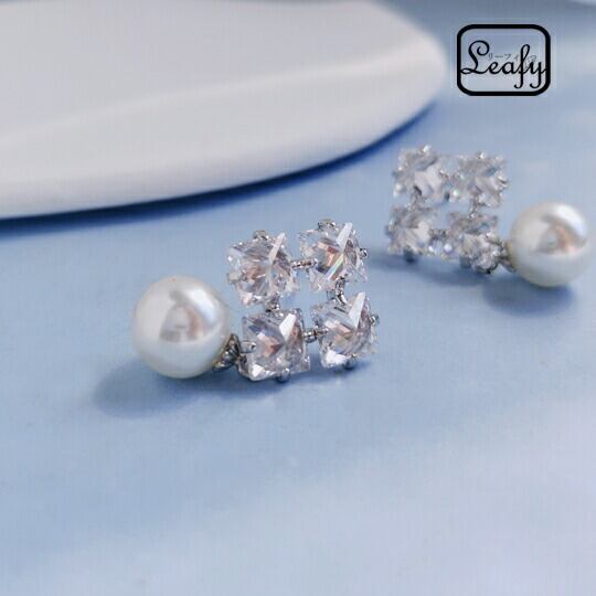 Leafyピアス 1ペア レディース シルバー ジルコニア スクエア 菱形 煌き 輝き おしゃれ 大人可愛い 上品 エレガント 華やか 存在感抜群 パール 真珠 大きめ お出かけ パーティー デート 普段使い プレゼント 4月誕生石 冠婚葬祭 入園式 入学式 S925ポスト sr00771ys