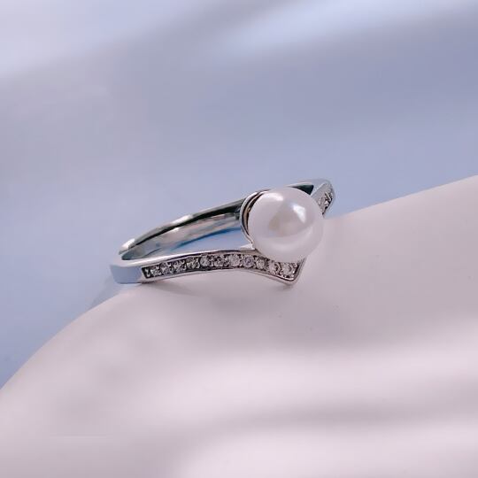 Terse シンプルなCZダイヤVライン&1粒フェックパールリング V字ラインで指長効果も抜群 光を受け入れながら、しっとりとした優しい光沢を放つ 清楚でエレガントな雰囲気を醸し出し、女らしさを強調します 重ねづけしてもおしゃれ デイリー パーティー 入学式 バレンタイン 2026 ギフト 彼女 妻 母 友チョコ Vライン フェックパール CZ ダイヤ 指長効果 軽量 上品 サプライズ 感謝 ホワイトデー 返し rs0338as