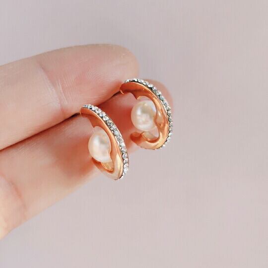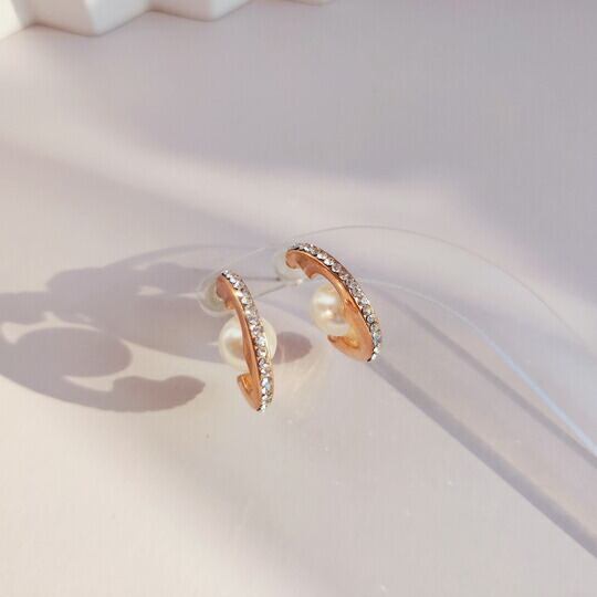 Leafy ラインストーンを隙間なく埋め込んだループタイプの贅沢なフェミニンアイテムピアス パールを配したお上品で煌びやかなデザイン&シンプルですっきりとしたシルエットはシーンを選びません。冠婚葬祭 入園式 入学式 卒業式 卒園式 ピンクゴールド バレンタイン 2026 ギフト 彼女 妻 母 友チョコ ラインストーン パール ピンクゴールド ループ 軽量 上品 サプライズ 感謝 ホワイトデー 返し x06751apg