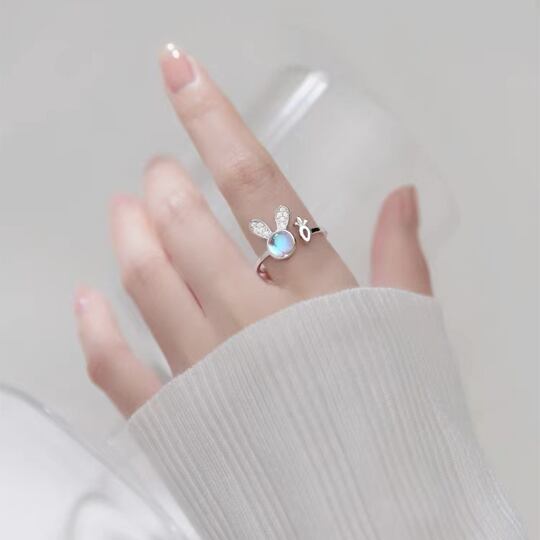 優雅で愛らしい、癒やし系のうさぎムーンストーン指輪!