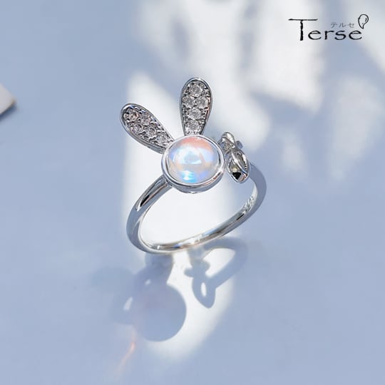 Terse柔らかい雰囲気で癒やし系として愛されているうさぎムーンストーン指輪 跳ねながら前向きにしか進まないとして「跳躍」を意味するハッピーモチーフ 可愛い耳にCZダイヤが輝く上品なデザイン どんなファッションとも相性の良い 干支 卯年 お正月 バレンタイン 2026 ギフト 彼女 妻 母 友チョコ うさぎ ラビット ムーンストーン CZ ダイヤ 跳躍 開運 軽量 上品 サプライズ 感謝 rs0364a