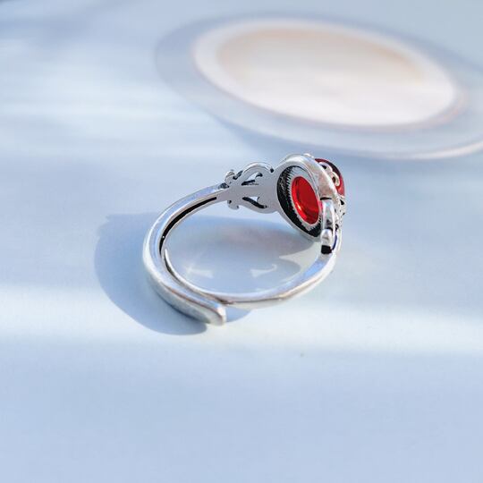 Terse ルビーのように美しい、一粒真っ赤なキュービックジルコニア指輪 しっかりと存在感を主張する大粒ストーンですが、落ち着いたクラシカルなアンティークデザインでエレガントに着けられます 落ち着いた大人の雰囲気が魅力的 洗練された印象 サイズ調節可 rs0328ar
