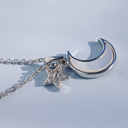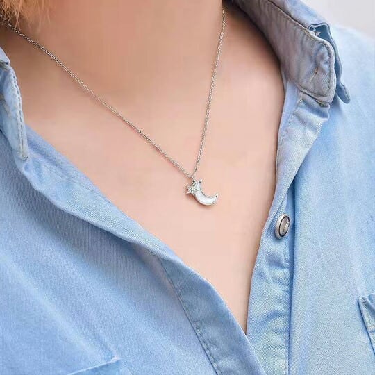 Terseスターリングシルバーの月と星ペンダントシルバー925 マザーオブパール&CZダイヤ装飾が施されたネックレスは、静かでエレガントな星空の夜をイメージさせます 控え目に胸元を彩るミルキーホワイトは装いの品の良いアクセントとしてもおすすめです バレンタイン 2026 ギフト 彼女 妻 母 友チョコ スターリングシルバー925 月と星 マザーオブパール ホワイト エレガント 軽量 sn0294as