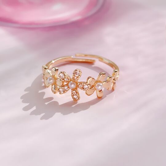 華やかに咲き誇るお花モチーフ!Terse 5輪お花モチーフが並ぶ愛らしいデザインした指輪