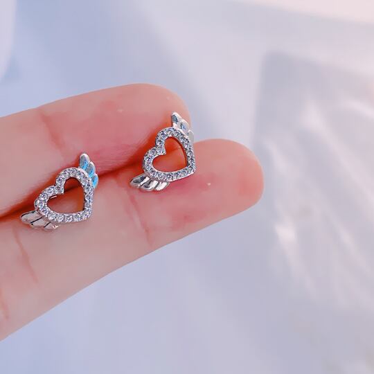 Leafyリーフィ 恋が叶いそうなオープンハートと天使の羽のピアス 1ペア 恋のキューピット エンジェルウィング レディース プレゼント ギフト 普段使い お出かけ お呼ばれ シルバー x09030as