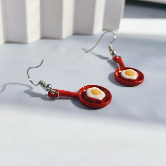 Terseピアス 1ペア レディース 目玉焼き 卵 朝食 ブレックファースト 朝 モーニング フライパン 赤 レッド シルバー 銀 かわいい 楽しい 人気 お出かけ パーティー デート 普段使い プレゼント 面白い se0099a