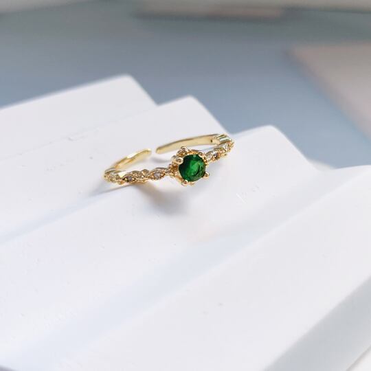「Terse 見る者を癒してくれる魅力的なエメラルドグリーCZダイヤ指輪」は、アンティークテイストなデザインが特徴の特別なアイテムです。このリングは、中心に輝く一粒のエメラルドグリーンキュービックジルコニアが印象的で、細部に施されたミル打ち風のテクスチャーがクラシカルな雰囲気を醸し出しています。シンプルながらも重厚感があり、様々なシーンであなたの手元を彩ります☆
