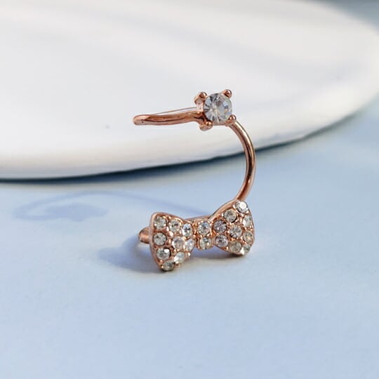 Leafy キラキララインストーン 小さめリボンイヤカフ イヤカフス ノンホールOK レディース ファッション ピアス ピンクゴールド (pink gold)【定形外・メール便対応】x06105apg