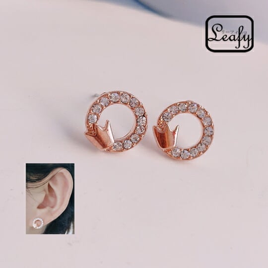 Leafy キラキラ可愛い・クィーン冠モチーフサークルピアス リズミカルな光の輪が耳元をエレガントに華やかさをプラスしてくれます♪カジュアルにもオフィスにも色々なシーンで活躍できます x04631apg