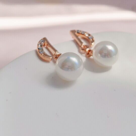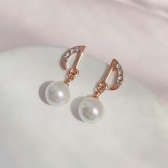Leafy キラキラ音符モチーフピアス 耳元からメロディが聞こえてきそう☆フェイクパール&ラインストーン 程よいサイズ感&ピンクゴールドが可愛らしい女性の魅力をUPさせてくれます☆☆ pierce-x06145a-pinkgold 冠婚葬祭 入園式 入学式 卒業式 卒園式